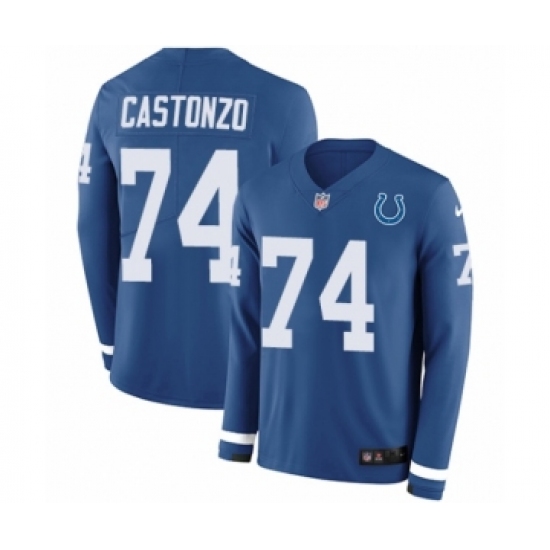 >Youth Nike Indianapolis Colts #74 Anthony Castonzo Limited Blue Therma Long Sleeve NFL Jersey