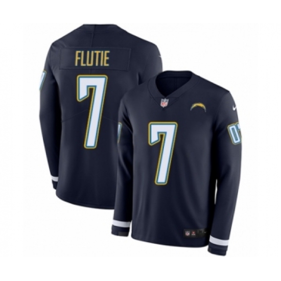 >Youth Nike Los Angeles Chargers #7 Doug Flutie Limited Navy Blue Therma Long Sleeve NFL Jersey