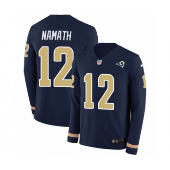 Youth Nike Los Angeles Rams #12 Joe Namath Limited Navy Blue Therma Long Sleeve NFL Jersey