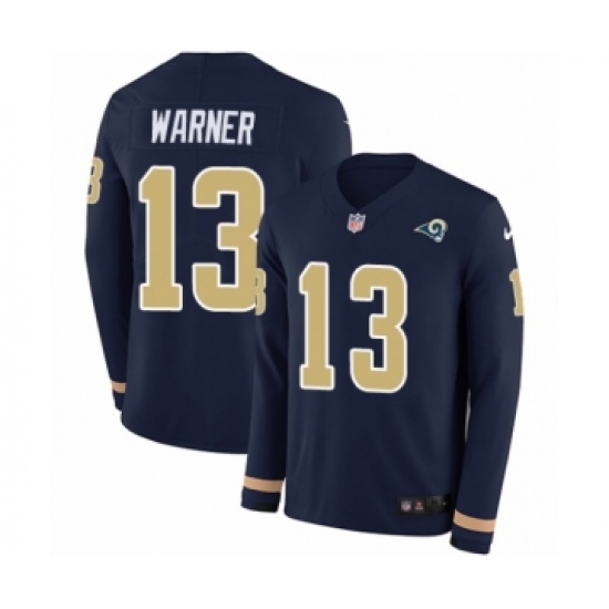>Youth Nike Los Angeles Rams #13 Kurt Warner Limited Navy Blue Therma Long Sleeve NFL Jersey