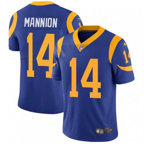 Home>NFL>Los Angeles Rams>Sean Mannion>Youth Nike Los Angeles Rams #14 Sean Mannion Royal Blue Alternate Vapor Untouchable Limited Player NFL Jersey