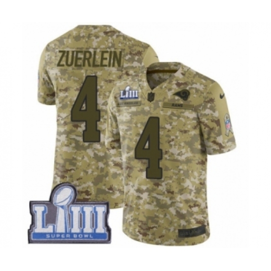 Youth Nike Los Angeles Rams #4 Greg Zuerlein Limited Camo 2018 Salute to Service Super Bowl LIII Bound NFL Jersey