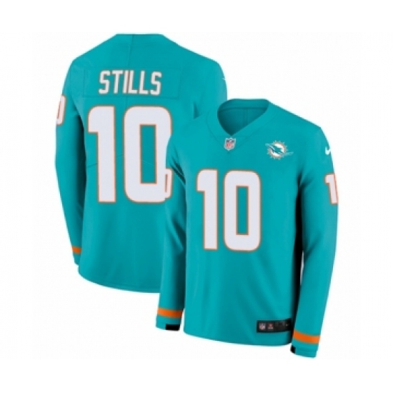 >Youth Nike Miami Dolphins #10 Kenny Stills Limited Aqua Therma Long Sleeve NFL Jersey