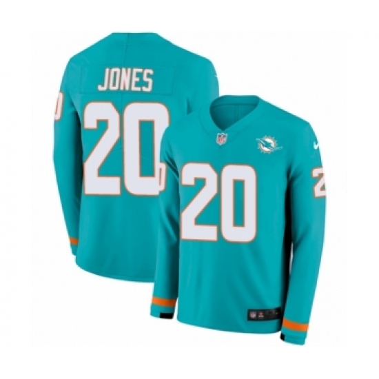 >Youth Nike Miami Dolphins #20 Reshad Jones Limited Aqua Therma Long Sleeve NFL Jersey