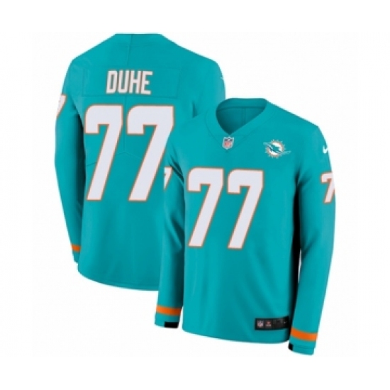 >Youth Nike Miami Dolphins #77 Adam Joseph Duhe Limited Aqua Therma Long Sleeve NFL Jersey