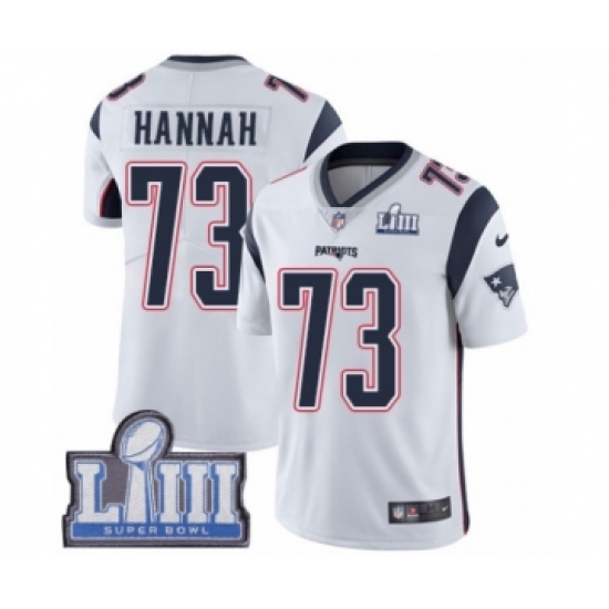 >Youth Nike New England Patriots #73 John Hannah White Vapor Untouchable Limited Player Super Bowl LIII Bound NFL Jersey