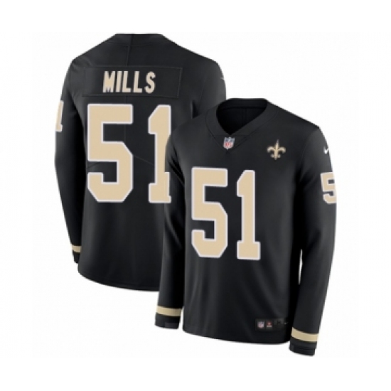 Men's Nike New Orleans Saints #51 Sam Mills Limited Black Therma Long Sleeve NFL Jersey