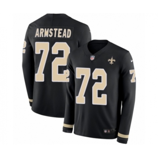 >Youth Nike New Orleans Saints #72 Terron Armstead Limited Black Therma Long Sleeve NFL Jersey