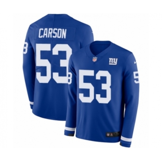 >Youth Nike New York Giants #53 Harry Carson Limited Royal Blue Therma Long Sleeve NFL Jersey
