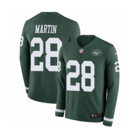 Men's Nike New York Jets #28 Curtis Martin Limited Green Therma Long Sleeve NFL Jersey