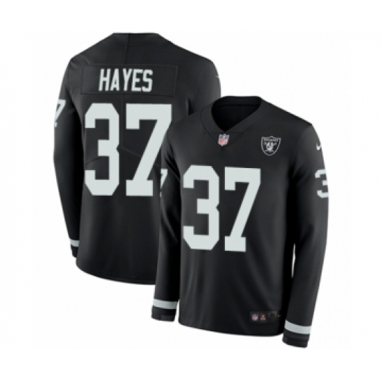 >Youth Nike Oakland Raiders #37 Lester Hayes Limited Black Therma Long Sleeve NFL Jersey