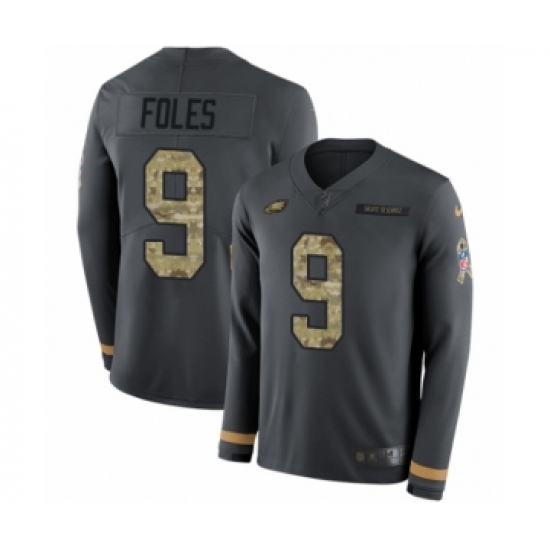 >Youth Nike Philadelphia Eagles #9 Nick Foles Limited Black Salute to Service Therma Long Sleeve NFL Jersey
