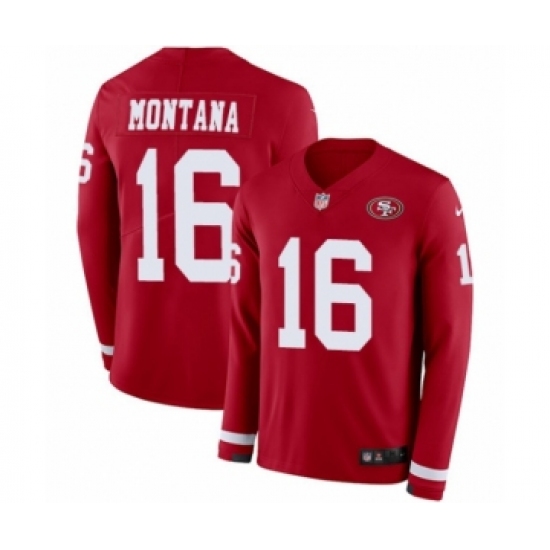 Youth Nike San Francisco 49ers #16 Joe Montana Limited Red Therma Long Sleeve NFL Jersey