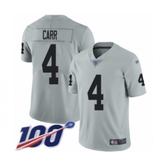 Youth Oakland Raiders #4 Derek Carr Limited Silver Inverted Legend 100th Season Football Jersey