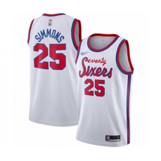 Men's Philadelphia 76ers #25 Ben Simmons Authentic White Hardwood Classics Basketball Jersey