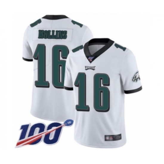 >Youth Philadelphia Eagles #16 Mack Hollins White Vapor Untouchable Limited Player 100th Season Football Jersey