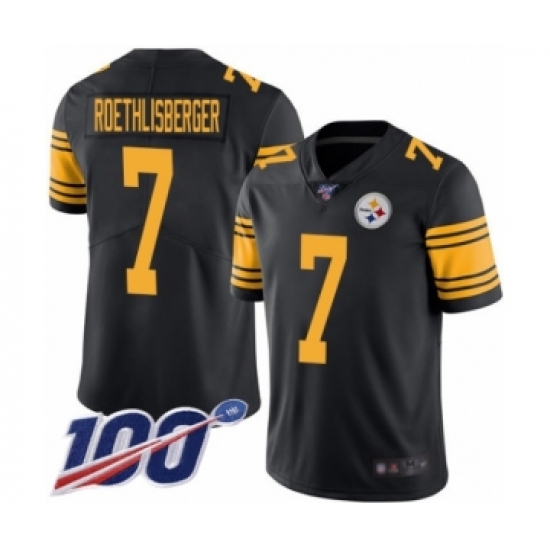 >Youth Pittsburgh Steelers #7 Ben Roethlisberger Limited Black Rush Vapor Untouchable 100th Season Football Jersey