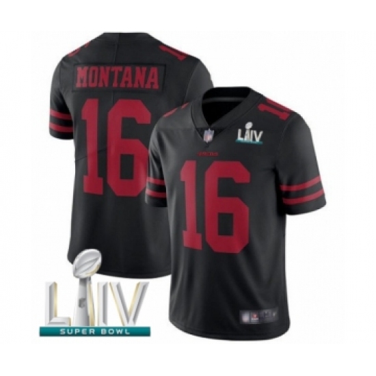 >Youth San Francisco 49ers #16 Joe Montana Black Vapor Untouchable Limited Player Super Bowl LIV Bound Football Jersey