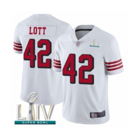 Women's San Francisco 49ers #42 Ronnie Lott White Vapor Untouchable Limited Player Super Bowl LIV Bound Football Jersey
