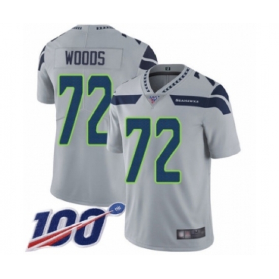 >Youth Seattle Seahawks #72 Al Woods Grey Alternate Vapor Untouchable Limited Player 100th Season Football Jersey