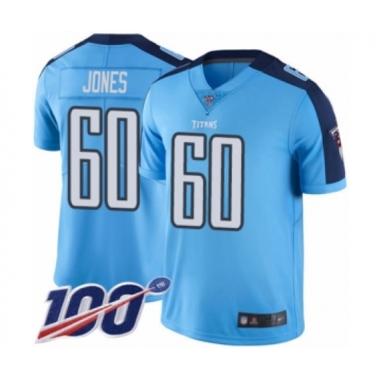 Men's Tennessee Titans #60 Ben Jones Light Blue Alternate Vapor Untouchable Limited Player 100th Season Football Jersey