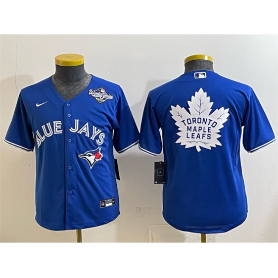 Youth Toronto Blue Jays & Leafs Royal 2025 World Series With White Leafs Logo Cool Base Stitched Baseball Jersey