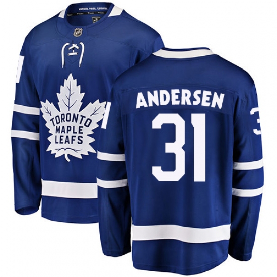 Home>NHL>Toronto Maple Leafs>Frederik Andersen>Youth Toronto Maple Leafs #31 Frederik Andersen Fanatics Branded Royal Blue Home Breakaway NHL Jersey