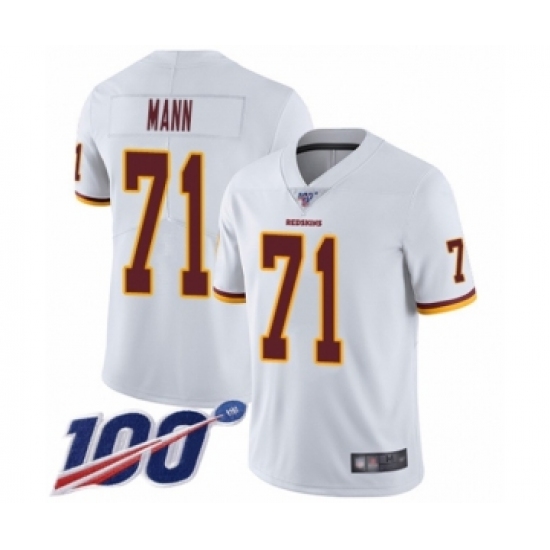 >Youth Washington Redskins #71 Charles Mann White Vapor Untouchable Limited Player 100th Season Football Jersey